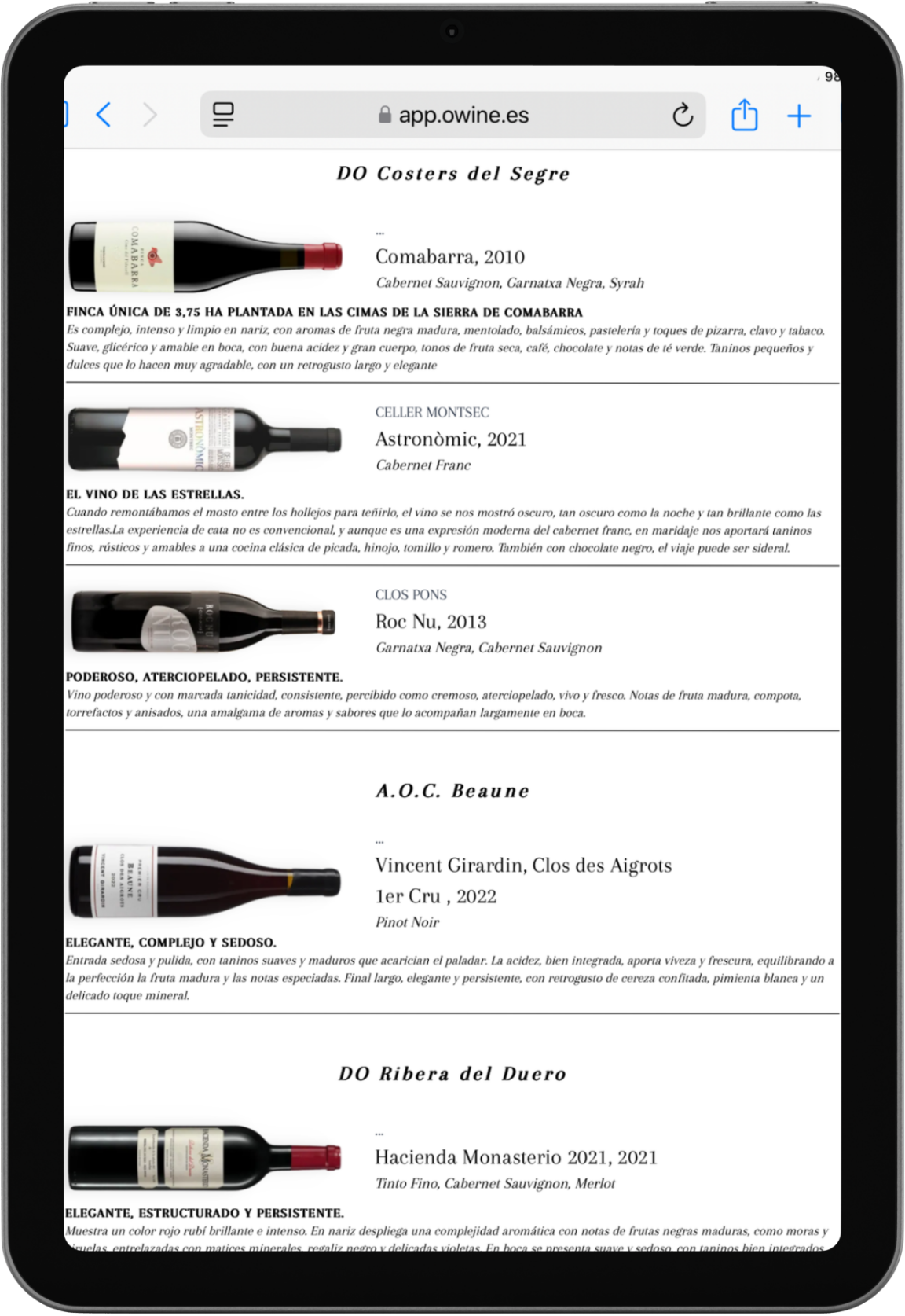 Sabemos que, con esta actualización de Ówine, solucionamos las cartas de vinos de más del 99% de los restaurantes, adaptándonos y respetando todas sus necesidades de personalización.